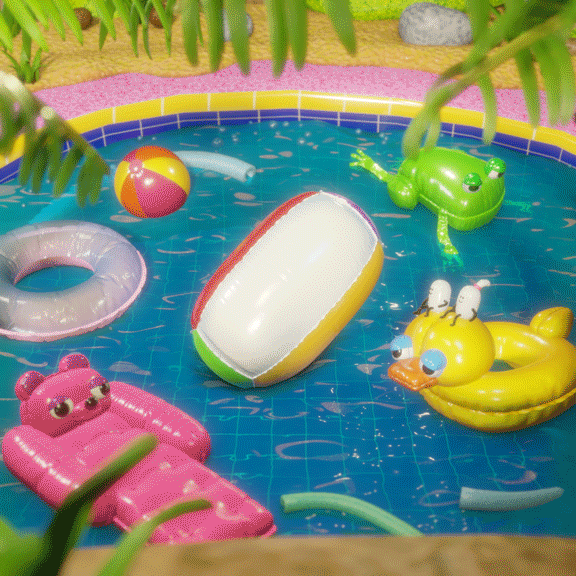 Raman Djafari directed this Blink Ink ad for Tic Tacs UK. Several animations by different artists were cut together, all dolly-zooming at the same pace with a large tic tac in the center of the screen. My part was to create a swimming pool with tropical vibes. Complete with noodles, beach balls, inflatable animals, and… the huge tic tac!